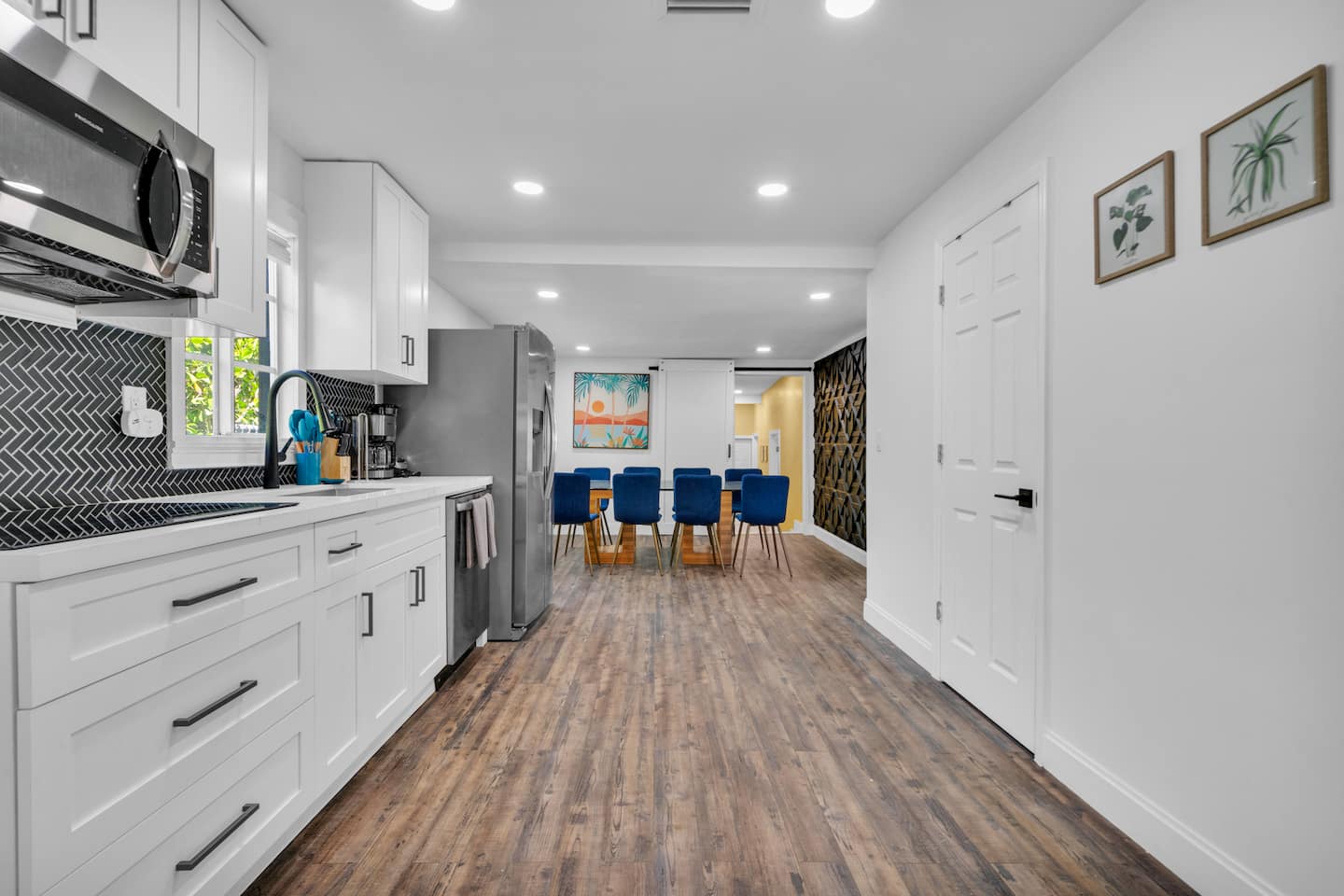 This house was the perfect size for our group of 17 girls. Everyone had a bed to sleep in and there were plenty of bathrooms to share between us. I love how many full length mirrors there were in the house. The kitchen and bathrooms were fully stocked with whatever we needed for the weekend, which was super nice not to have to buy extra things. We liked having a door code if people got to the house at different times. The backyard was so cute and loved the pool and hot tub! The house is only 10min from the airport and about 15-20min to South Beach. It was the perfect spot because I feel like we were in the middle of all the places we wanted to go! The property management is easy to get in touch with because you can text them. Will definitely recommend this house to other people!