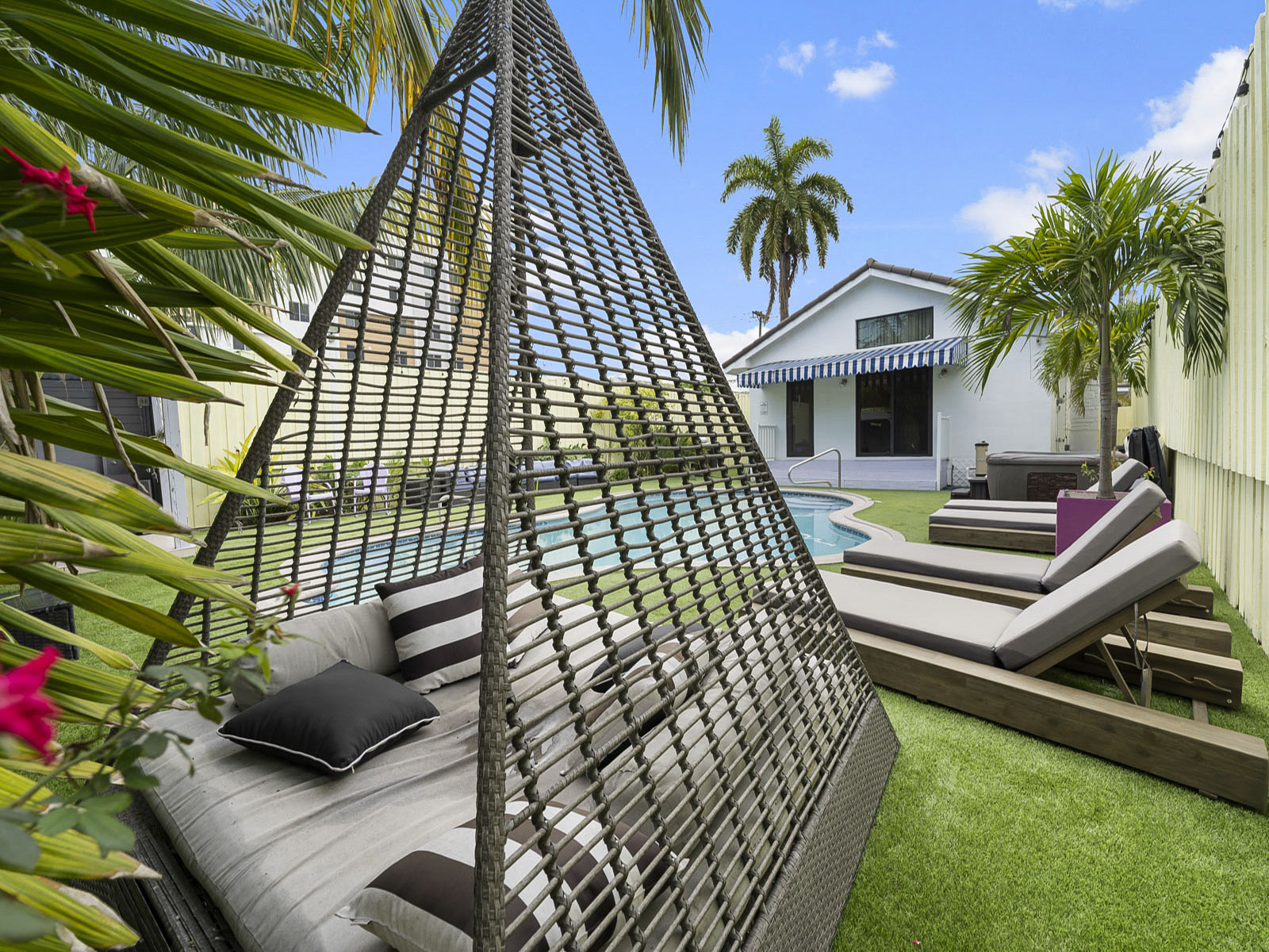 Welcome to The Velvet Palm - a 5-bedroom, 3-bathroom home perfect for large groups. Enjoy ultimate privacy in your tropical oasis with a pool, hot tub, and 12-ft fence. Located just 5 minutes from the airport, Midtown, Design District, and Wynwood, 10 minutes from Brickell, and 15 minutes from South Beach. Come experience the best of Miami from our convenient and comfortable home!