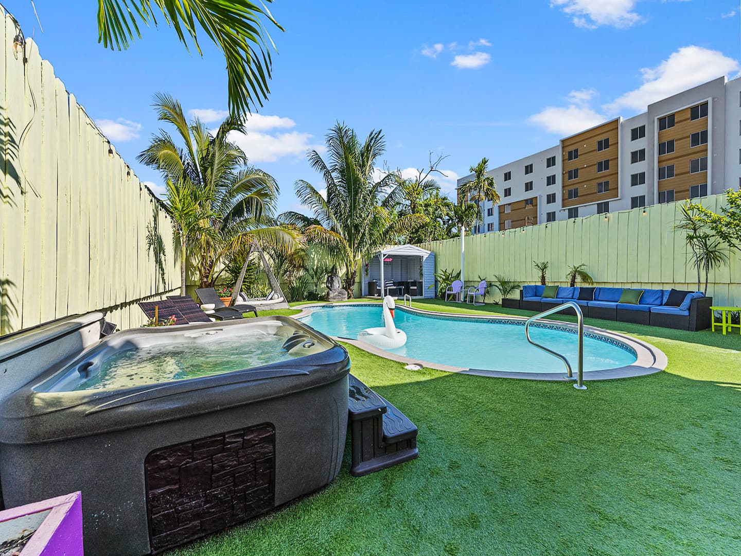 We were a group of eight guys meeting after 20 years (since college) and this house turned out to be an incredible place for our meet for couple of days. The location is great, close by to the key places to visit and airport. Little Havana is a beautiful place which is 10 minutes drive from this house and highly recommend visiting. We used Uber for all our rides and was very quick. The backyard was awesome with the pool, hot tub, and the lawn chair setup. The inside of the house was wonderful as well with several beds able to easily accommodate all of us. The host Jonah was very nice, kind, responsive and was able to help us with our requests. Overall a great experience!