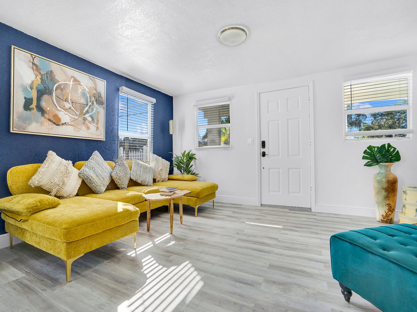 • Beautiful living room space with 60 inch Smart TV with YoutubeTV, Netflix, Hulu, Pandora and many other apps installed. Large living room for accommodating larger groups.
