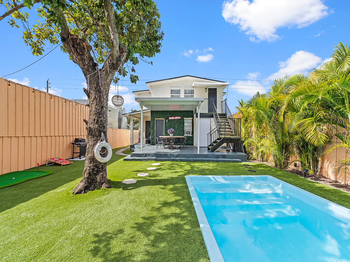 Escape to Villa Bonita, your ultimate Miami vacation home! Our fully renovated 6 bedroom, 4 bathroom villa sleeps 20+ guests and offers luxurious amenities. Enjoy the stunning outdoor space with a pool and hot tub. Conveniently located near Miami's hot spots, including Midtown, the Design District, Wynwood, and just 15 minutes from South Beach. Bachelor and bachelorette parties are welcome! Book your dream vacation at Villa Bonita now.