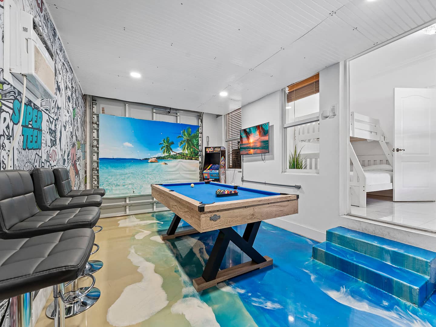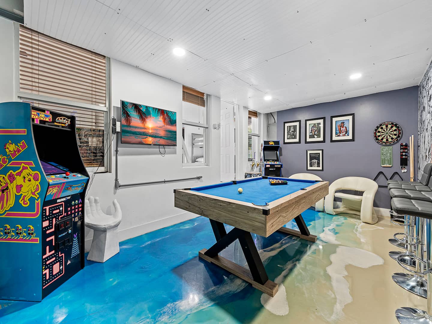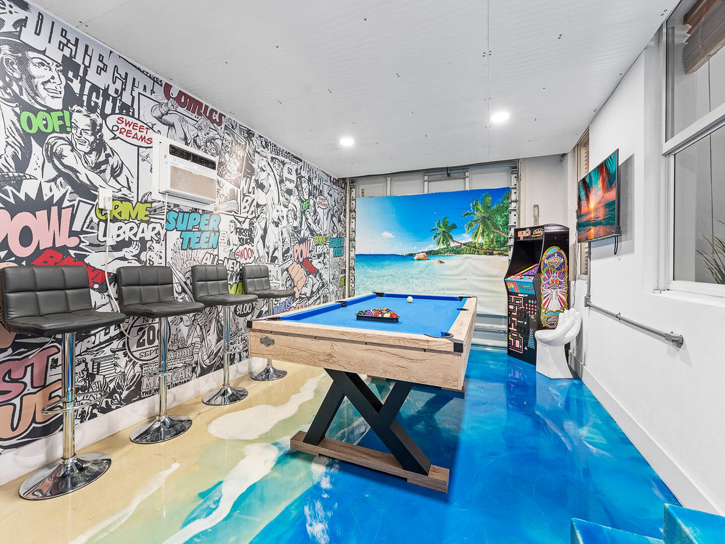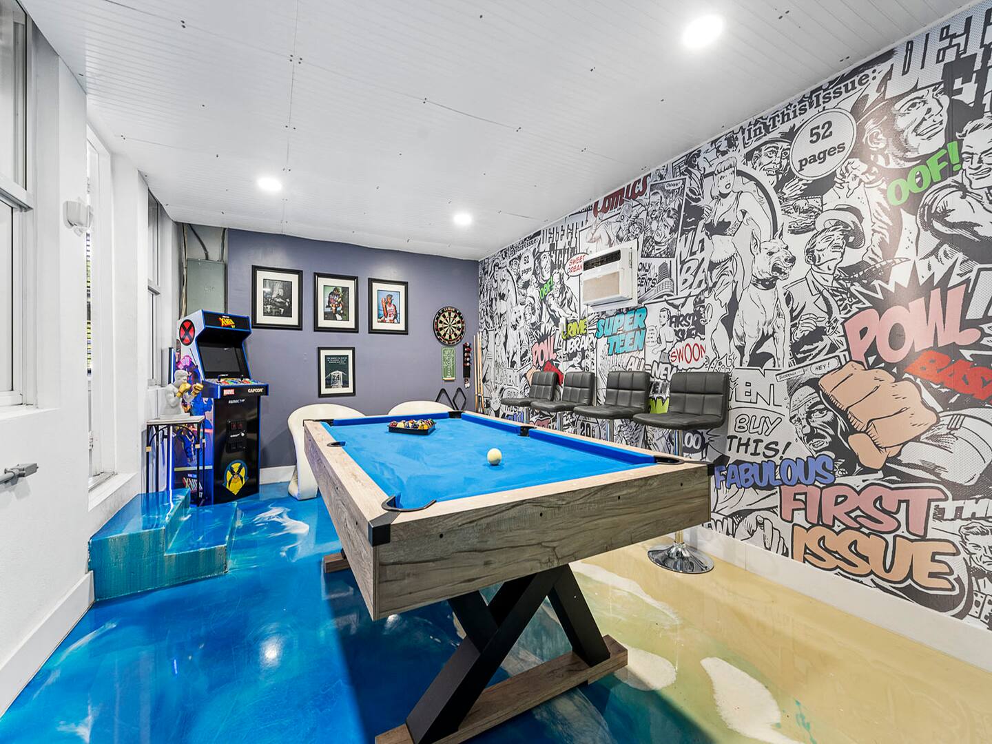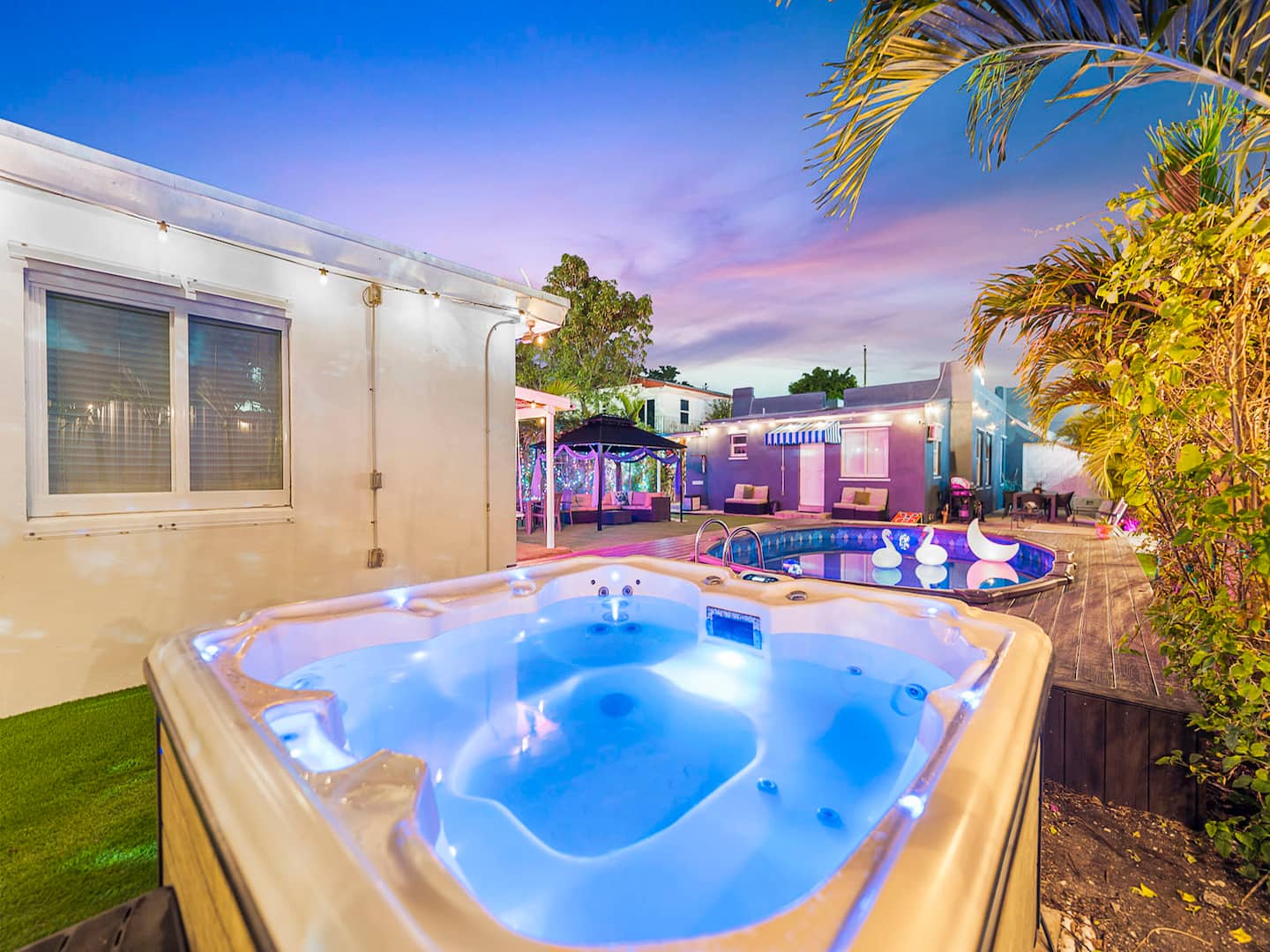 Welcome to our luxurious villa in Little Havana! With 7 rooms including a game room and 4.5 bathrooms, our villa is perfect for large groups and special occasions. Enjoy the Miami sun in our sun-drenched backyard with pool and hot tub, just a 2-minute walk from Calle Ocho's culture, music, and food. Our central location puts Miami's hot spots just a short drive away, including Brickell, Miami Beach, and the airport. Memories are made here!